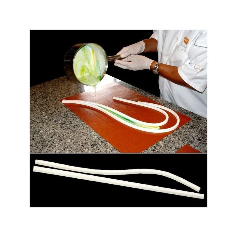 Ces barres en silicones de qualité alimentaire vous permettent de réaliser toutes les formes possibles. Flexible, modelez les barres selon vos souhaits et posez les sur une surface plane pour donner la forme souhaitée à votre stucture. Vous pouvez également les utiliser pour le coulage du chocolat. Chaque barre mesure 60cm.