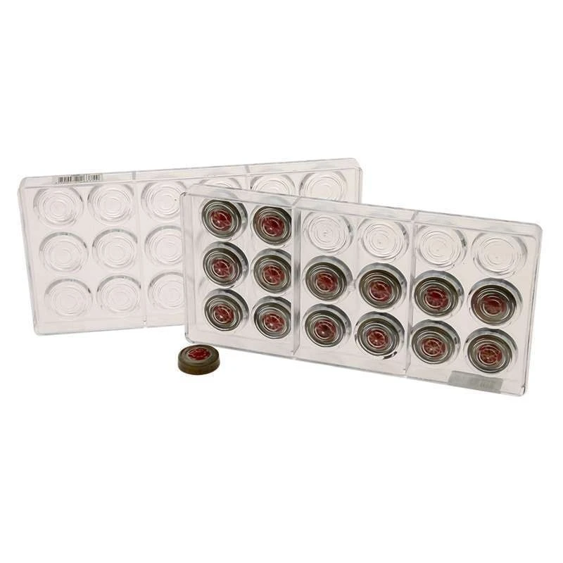 Ce moule bonbon chocolat est composé de plastique injecté. Cette matière apporte de la brillance au chocolat et facilite le démoulage des bonbons en chocolat.