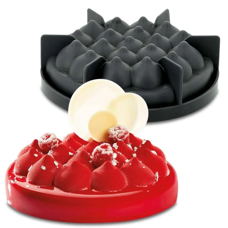 Ce moule entremet est composé de silicone alimentaire souple, facilitant le démoulage de vos desserts et permet de conserver les reliefs de vos gâteaux.