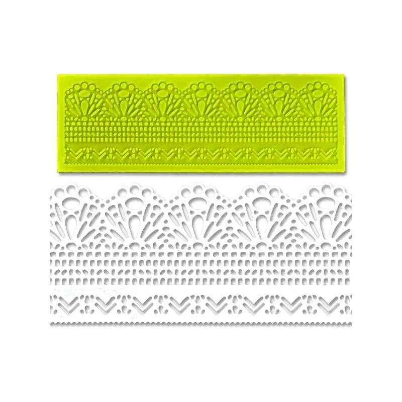 Composé de silicone alimentaire, ce moule silicone dentelle vous permet de réaliser des frises d’une finesse inégalable pour les pâtisseries, gâteaux en pâte a sucre, pièces en chocolat…