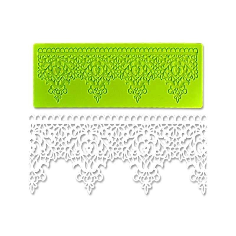 Réalisez des décors raffinés et élégants en Cake Design ou pour vos moulages en chocolat avec ce Moule Silicone Dentelle Frise Pendentif .