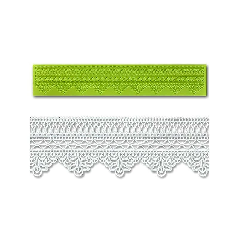 Réalisez des décors raffinés et élégants en Cake Design ou pour vos moulages en chocolat avec ce Moule Silicone Dentelle Frise Broderie Vintage.
