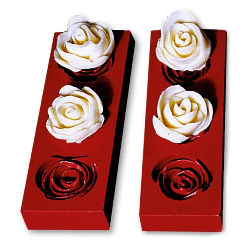 Réalisez simplement et rapidement de petits décors pour touts vos desserts et chocolats avec ce Moule Silicone Empreinte 3 Roses diam.40mm.
